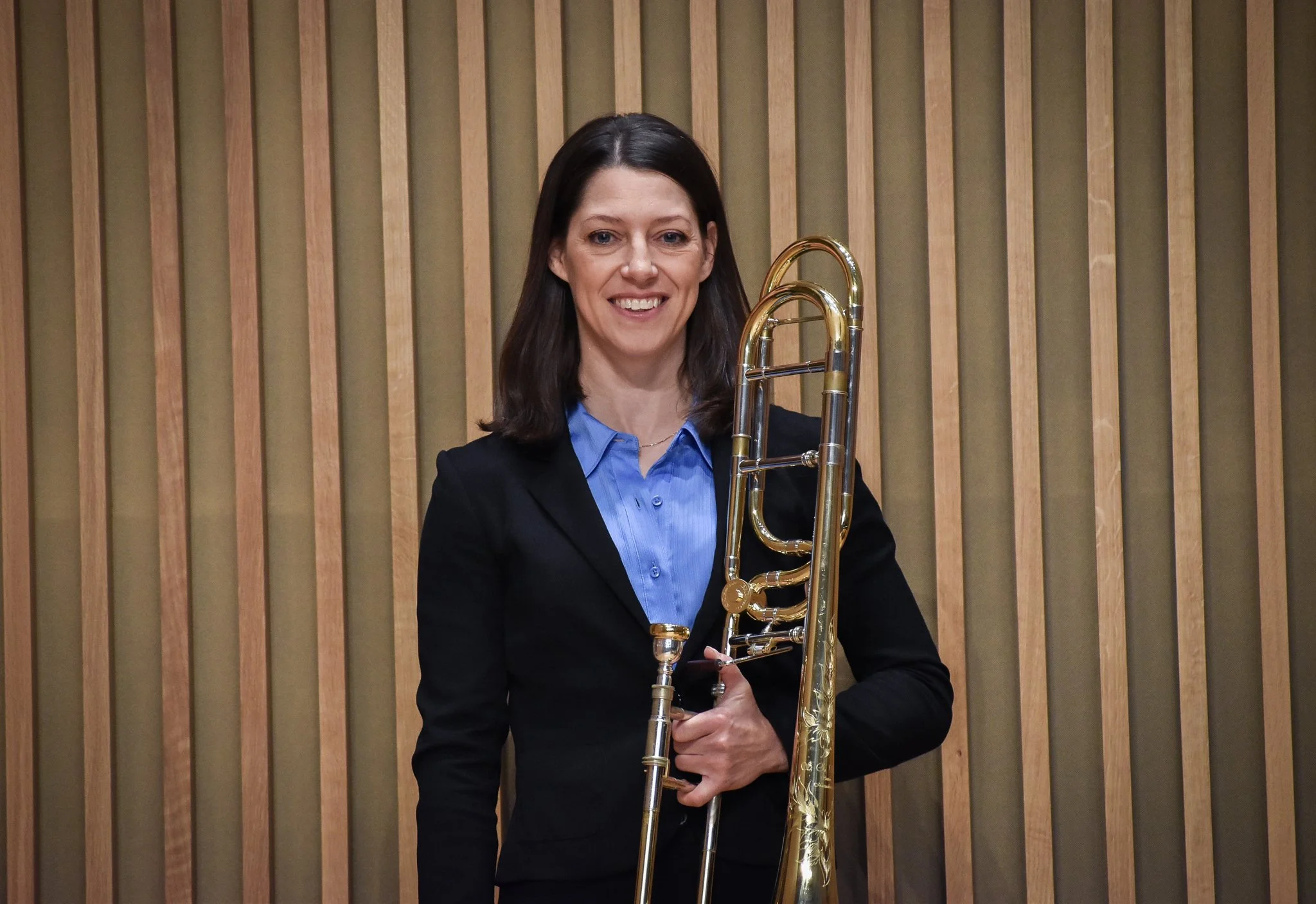 Dr. Boutin holds degrees in Music Education from Ithaca College (B.M., Music Education), the Eastman School of Music (M.M.) and the University of Texas at Austin (D.M.A.). Principal teachers include Dr. Harold Reynolds, Mark Kellogg, Dr. John Marcellus, and Dr. Nathaniel Brickens. Dr. Boutin has held positions at Murray State University and Texas A&M University-Kingsville. She grew up in Brunswick, Maine, and loves returning to the state to visit beaches, hike, visit Bar Harbor, and carriage drive with her horse. Dr. Boutin is an S.E. Shires and Greg Black Artist, and is an active member of the International Trombone Association and the International Women’s Brass Conference.